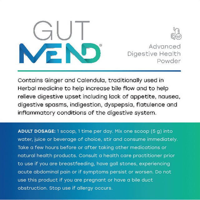 GutMEND® is a one-of-a-kind gut health powder (150 g) that helps relieve digestive upset including nausea, digestive spasms, indigestion and inflammatory conditions of the digestive system. Key ingredients include glutamine, organic marshmallow root, artichoke, caraway, organic ginger, calendula and quercetin. This product contains a very unique 7-ingredient formulation to repair leaky gut. It is scientifically based from human clinical trials, sourced from high quality raw materials and contains clinical doses for maximum efficiency. GutMEND® contains a synergistic blend of both east and west ingredients. GutMEND® is vegetarian, dairy, soy, GMO and gluten free, GMP certified and made in Canada. The final product is lab tested for its identity, quantity, potency, stability and is guaranteed to be free from heavy metals and microbial contaminants.