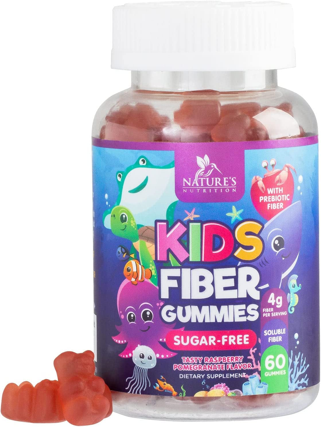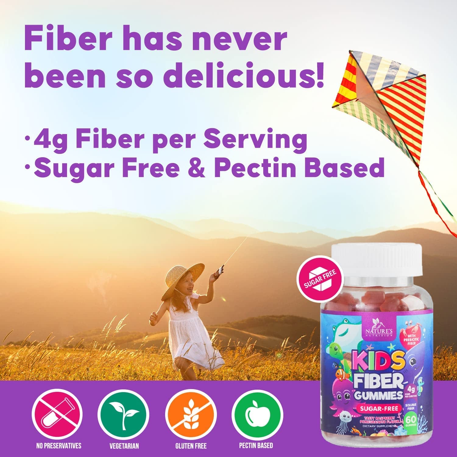 - Sugar Free Fiber Gummies for Kids: Natural plant based fibre supplement for children ages 4 11 by natures nutrition with capsules adults powder no women men teens soluble gummy pills daily well best prebiotic insoluble high probiotic dietary 10g 30g 4g 7g 8g raw inulin vitamins fibra gummie tablets caplets chews chewable bears caps nature nutritional methylcellulose whole extra strength digestive health support berry flavor regularity choice fibers toddler
