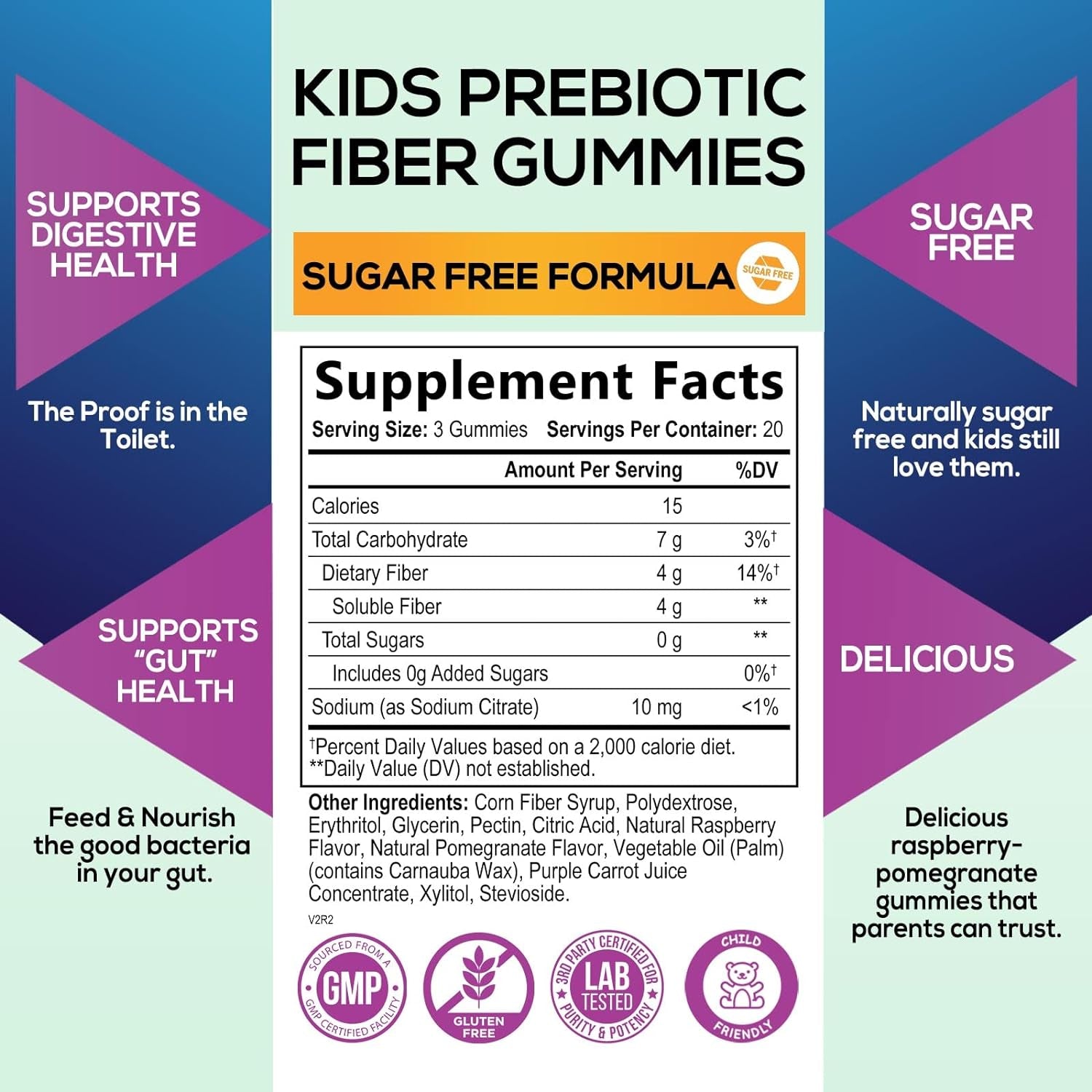 - Tummy-Friendly Fiber for Kids: Our sugar-free Fiber Gummy Bears are packed with prebiotics to support digestive health and regularity