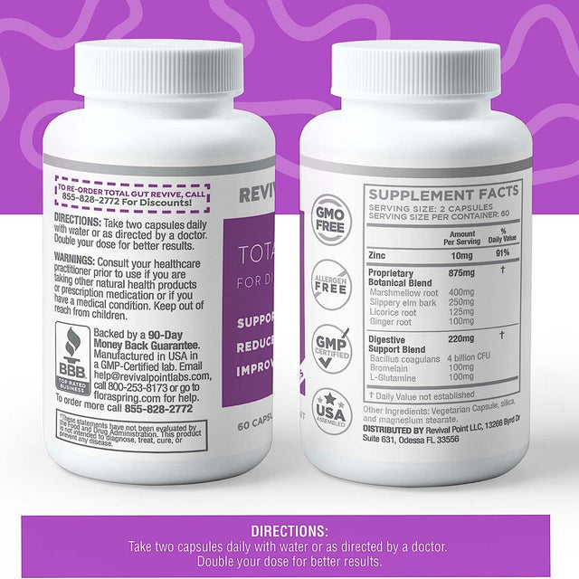 Leaky Gut Repair & Digestive Health Supplement for Women & Men Revival Point 360 Count