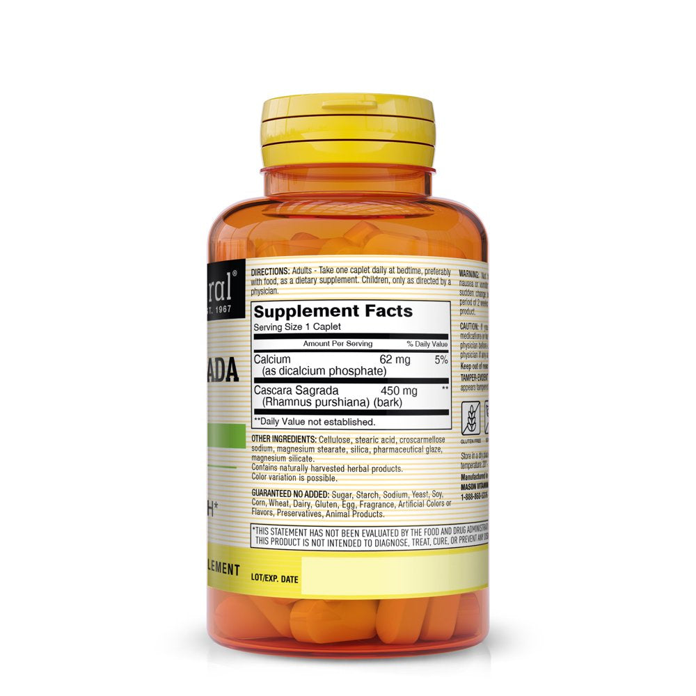 Product Name Mason Natural Cascara Sagrada 450 mg with Calcium - Promotes Bowel Function, Gentle Constipation Relief, Improved Digestive Health, 100 Caplets