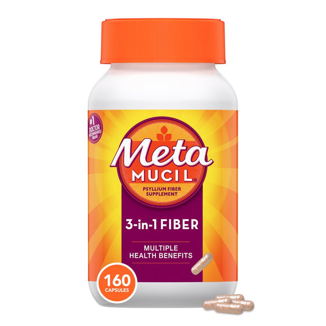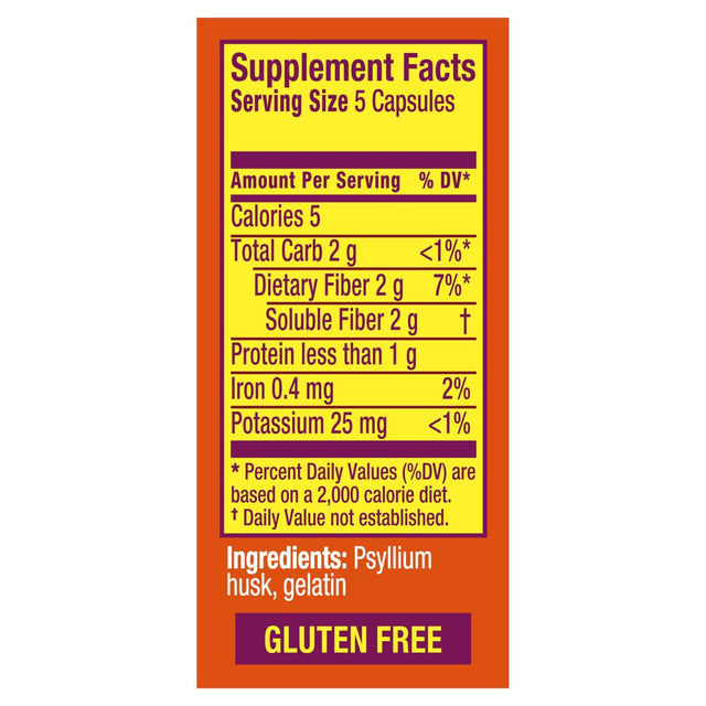 From the #1 selling fiber brand^, Metamucil Daily Fiber supplement capsules are an easy way to get plant-based psyllium fiber to help support your digestive health*. These capsules are made with only 2 ingredients! They also help to maintain healthy blood sugar levels* and to support adult heart health by lowering cholesterol.Diets low in saturated fat and cholesterol that include 7 grams of soluble fiber per day from psyllium husk, as in Metamucil, may reduce the risk of heart disease by lowering cholesterol. One adult serving of Metamucil Fiber Powder has 1.8 grams of this soluble fiber. *THESE STATEMENTS HAVE NOT BEEN EVALUATED BY THE FOOD AND DRUG ADMINISTRATION. THIS PRODUCT IS NOT INTENDED TO DIAGNOSE, TREAT, CURE, OR PREVENT ANY DISEASE.^Procter & Gamble calculation based in part on data reported by NielsenIQ through its ScanTrack Service for the Fiber Supplements (branded only) for the 52-weeks period ending 04/09/22, for the Total U.S. Market xAOC, according to the NielsenIQ standard product hierarchy. Copyright 2022, Nielsen Consumer LLC.