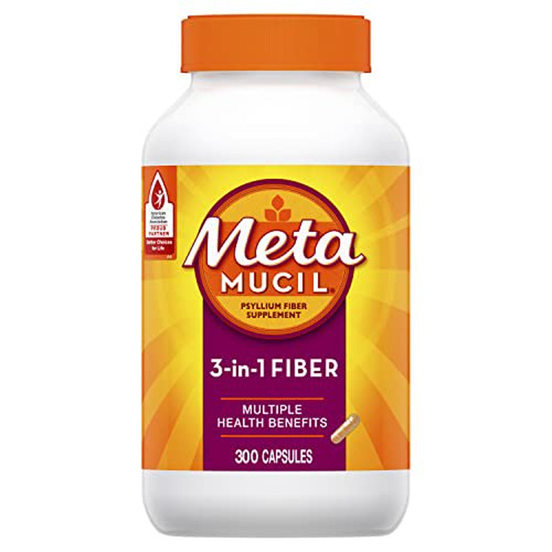 Metamucil, Daily Psyllium Husk Powder Supplement, 3-In-1 Fiber for Digestive Health, Plant Based Fiber, 300Ct Capsules