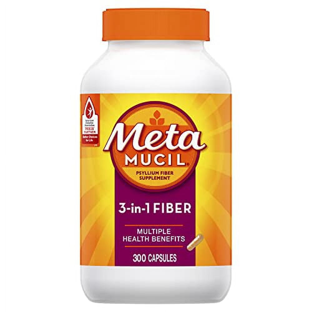 Metamucil, Daily Psyllium Husk Powder Supplement, 3-In-1 Fiber for Digestive Health, Plant Based Fiber, 300Ct Capsules