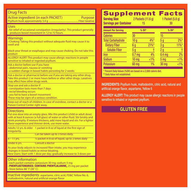 Metamucil On-The-Go, Daily Psyllium Husk Powder Supplement, Sugar-Free Powder, 4-In-1 Fiber for Digestive Health, Orange Flavored Drink, 30 Packets (Pack of 2) - 30 is backordered and will ship as soon as it is back in stock.