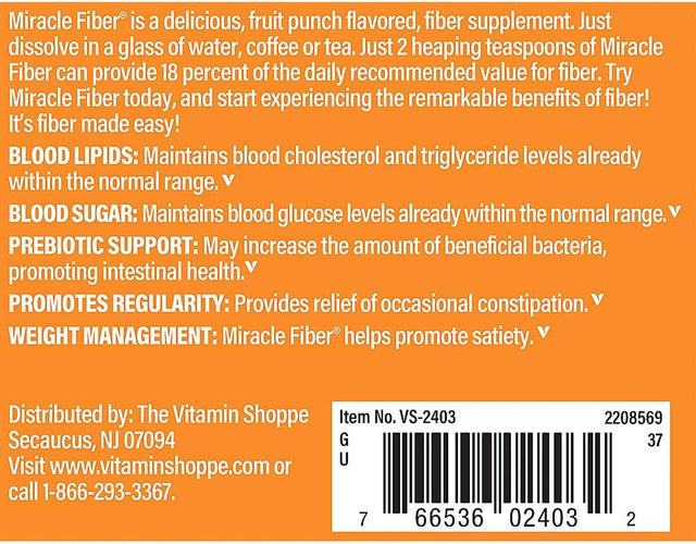 Miracle Fiber Powder - Digestive Health & Glucose Support - Fruit Punch (7.7 Oz. /34 Servings)