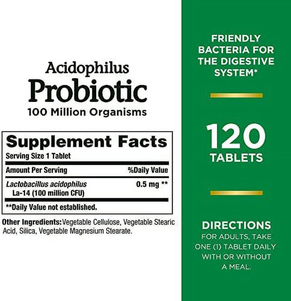 Nature’S Bounty Acidophilus Probiotic, Daily Probiotic Supplement, Supports Digestive Health, 1 Pack, 120 Tablets