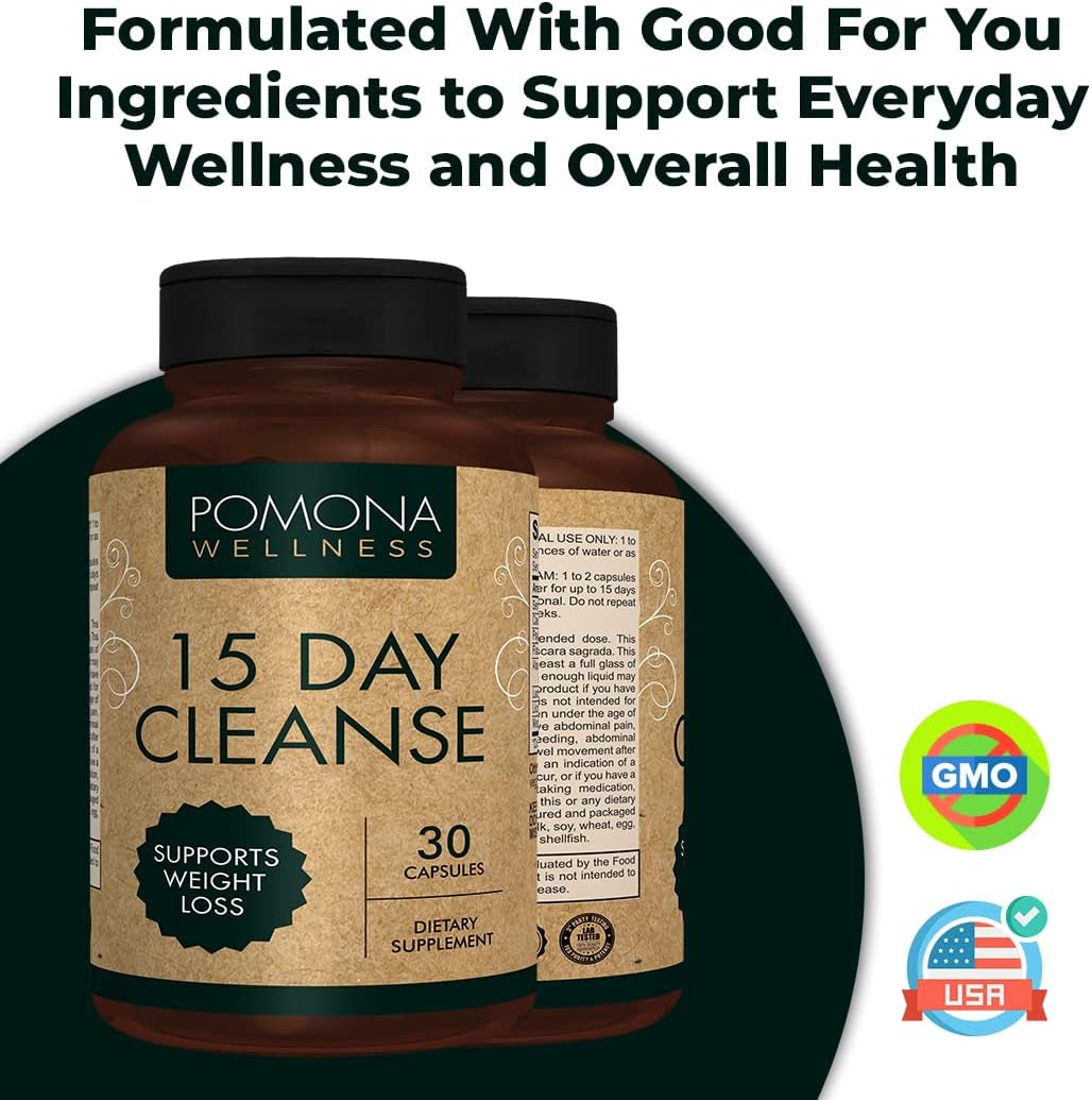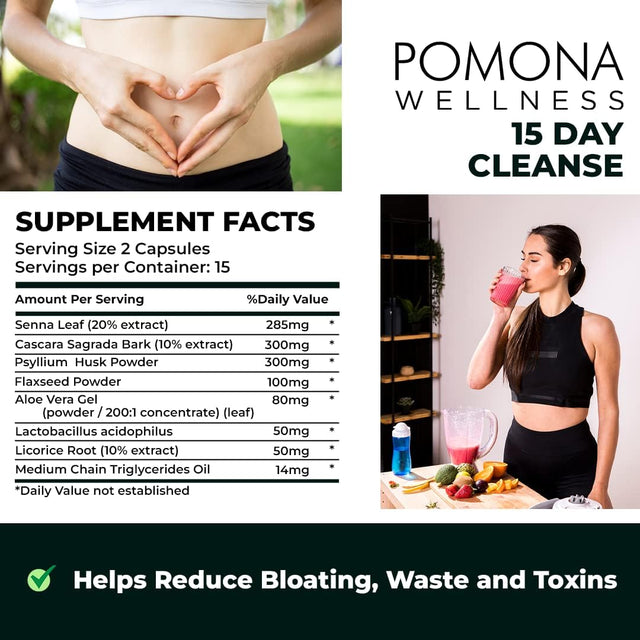 Pomona Wellness 15 Day Cleanse Capsules, Supports Digestive Health and Gut Health, Helps Reduce Bloating, Remove Waste and Boost Energy, Non-Gmo, 15 Day Supply, 30 Count