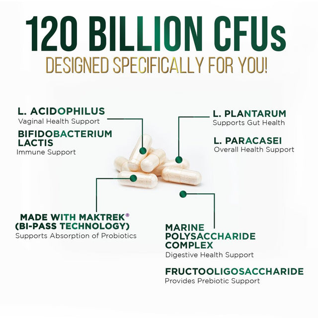 • Tailored for Women & Men: Our probiotic blend is designed to support womens digestive & vaginal health while also offering essential support for men; Made with MAKTrek Bi Pass Technology which is a patented formula that provides successful absorption of probiotics within the body