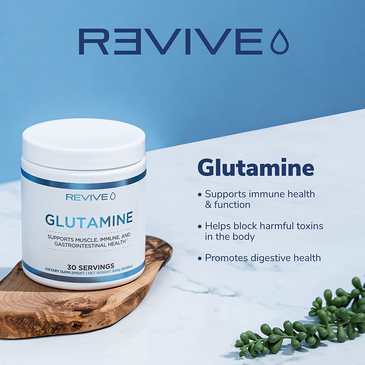- Support Overall Health: Glutamine from Revive is a natural supplement designed to support muscle recovery, immune function, and gut health. This formula contains a potent dose of L-Glutamine, an essential amino acid that plays a critical role in the body's recovery and repair processes. 30 servings.