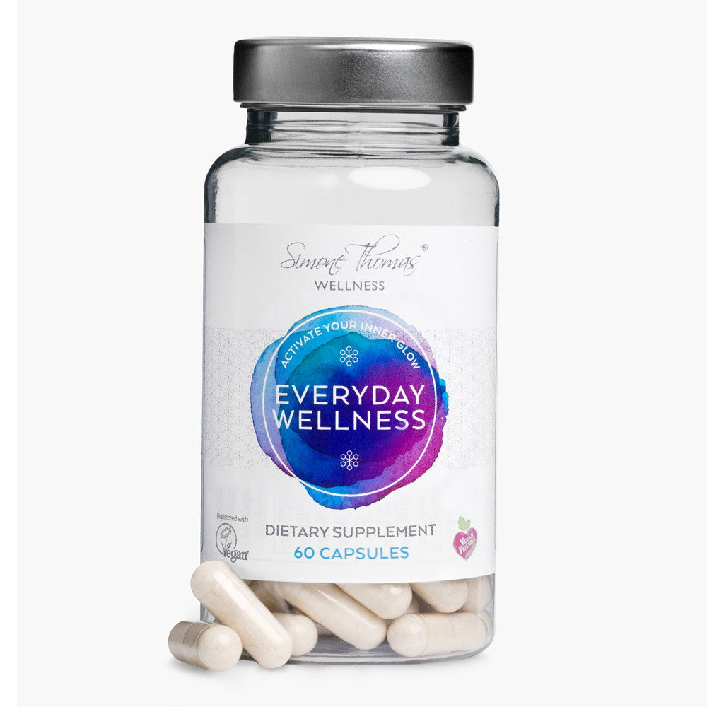 Simone Thomas Wellness Everyday Wellness Super Strength Probiotic Supplement is a super-strength probiotic supplement containing 6 types of probiotics including bifidobacteria, lactobacillus, and streptococcus plus FOS in an acid-resistant capsule shell (for optimal effectiveness) which help support friendly bacteria levels and promote a healthy gut. With the finest ingredients, everyday wellness enables the body to function at its optimal level, fighting environmental damage such as pollution, reducing inflammation, and enhancing nutrient absorption in the gut. Improved gut health contributes to the improvement of our hair, skin, scalp, energy levels, and overall well-being. While in conjunction with a balanced diet, Everyday Wellness will work to support friendly bacteria levels, help promote a healthy digestive tract, support immune and metabolic reactions, promote healthy hair and scalp, support overall well-being, and innovative capsules that protect bacteria to ensure optimal effectiveness. Made with 100% organic ingredients, Vegan Certified, Sustainably Sourced, Sugar-Free, Dairy Free, Cruelty-Free, Nut Free, Non-GMO, Safe to Take During Pregnancy, and made with Recyclable Packaging to assure you are consuming a product that is not only good for your body but for the environment as well. *Recently Awarded Best Supplement to Take During Pregnancy by The Independent.*