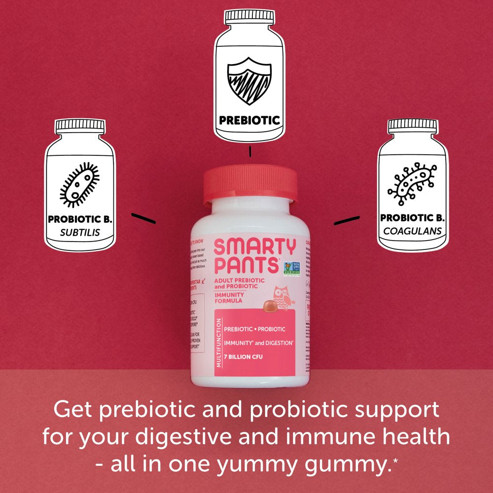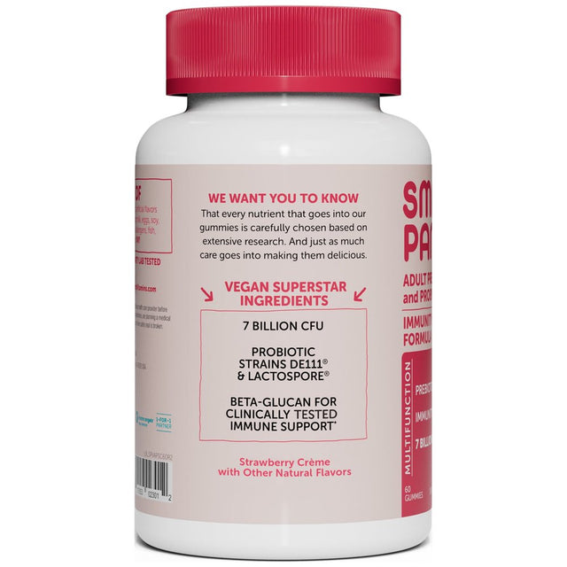 Smartypants Adult Prebiotic & Probiotic Immunity & Digestive Health Gummy Vitamins - Strawberry Creme - 60Ct