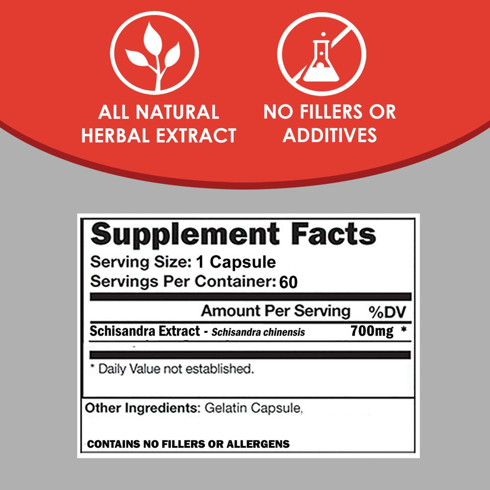 VH Nutrition Schisandra 700Mg Adrenal Support Supplement - Enhance Immune System, Stress Relief, Fertility, Digestive Health & More - 60 Capsules