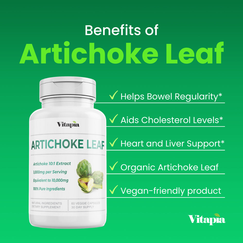 Vitapia Artichoke Leaf 1000Mg(10000Mg) per Serving - 10:1 Extract - 60 Veggie Capsules - Vegan and Non-Gmo - Supports Digestive Health and Liver Health, Healthy Metabolism, Antioxidant