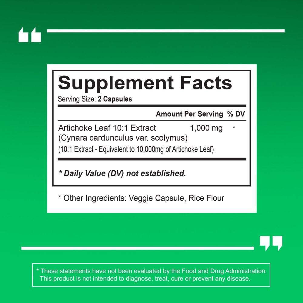 • BEST ARTICHOKE LEAF SUPPLEMENT - 30 Servings Per Container. The Serving Size is 2 veggie capsules(1000mg) per day. 30 Day supply. Non-GMO, Gluten-free. The super pure ingredient is the third-party tested to ensure you’re getting all the good stuff.