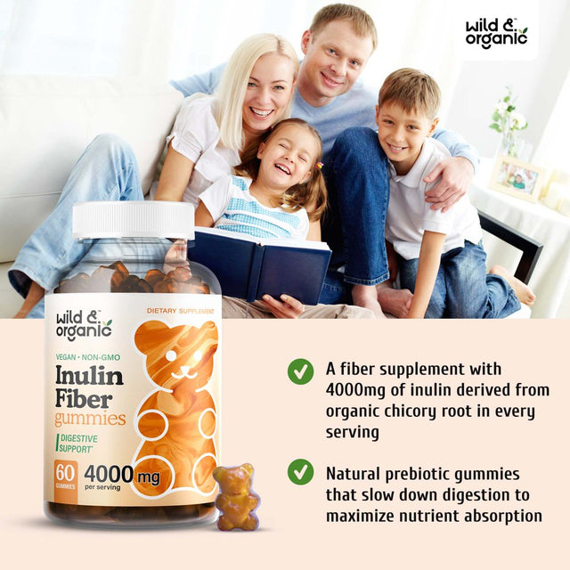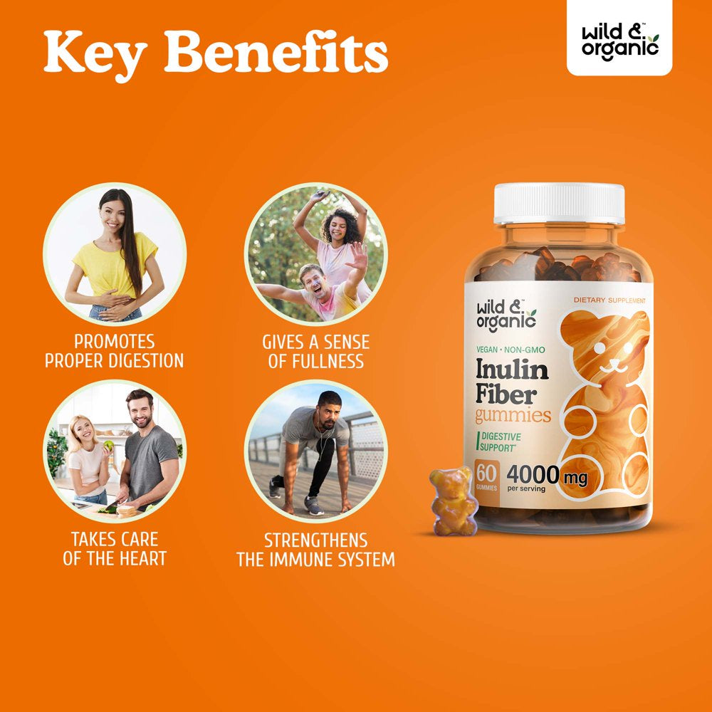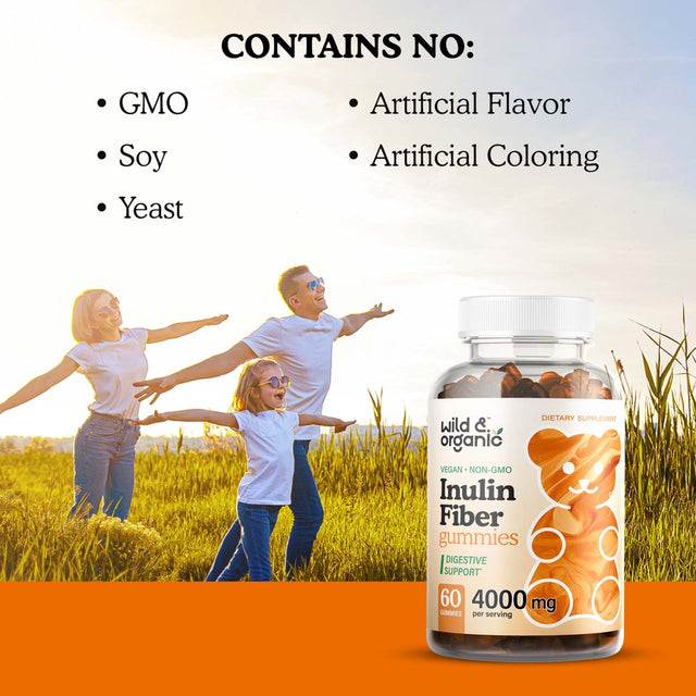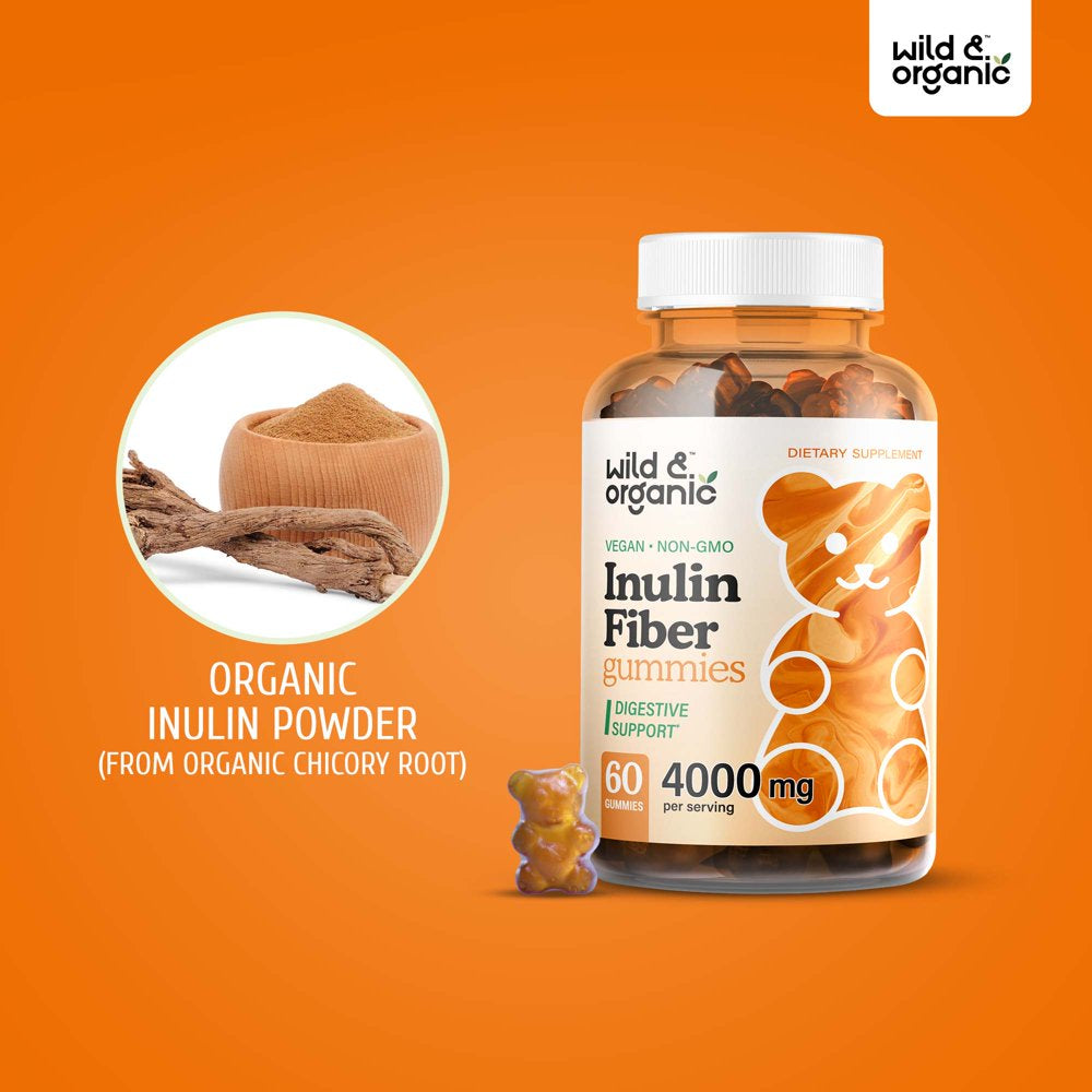 Wild & Organic Inulin Fiber Gummies - Natural Prebiotic Gummies for Digestive Health, 60 Chews