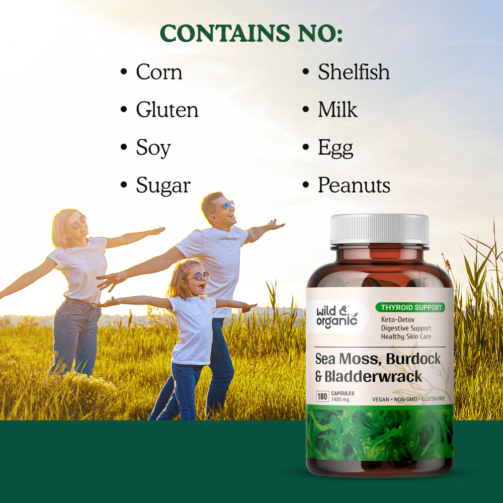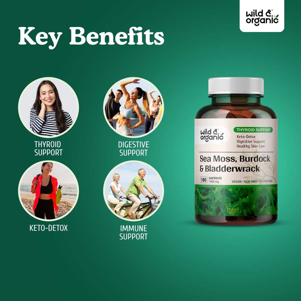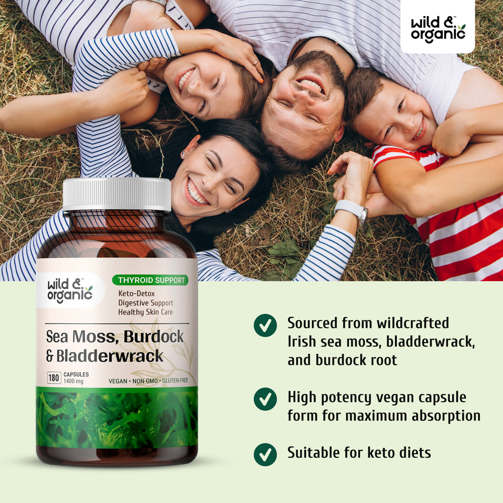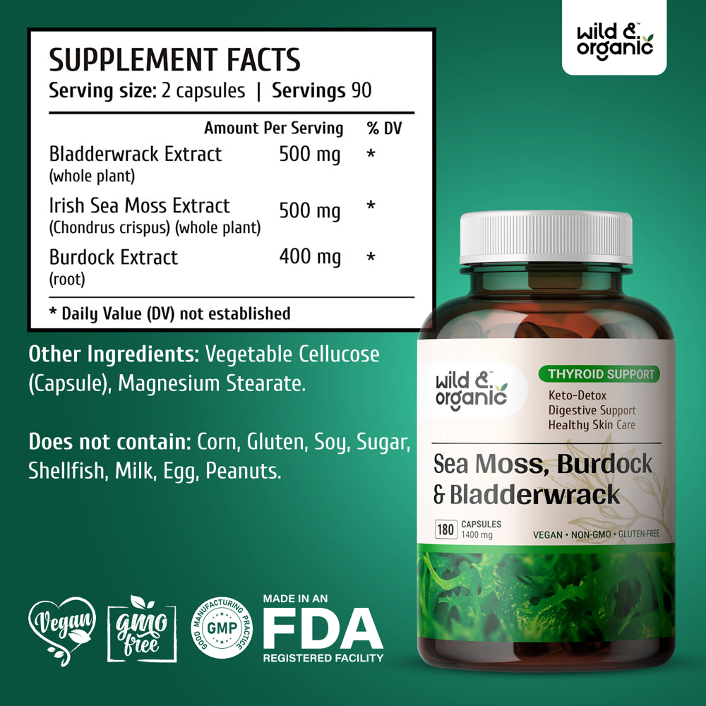 Wild & Organic Sea Moss 180 Capsules for Thyroid & Digestive Health W/ Irish Moss, Burdock Root & Bladderwrack