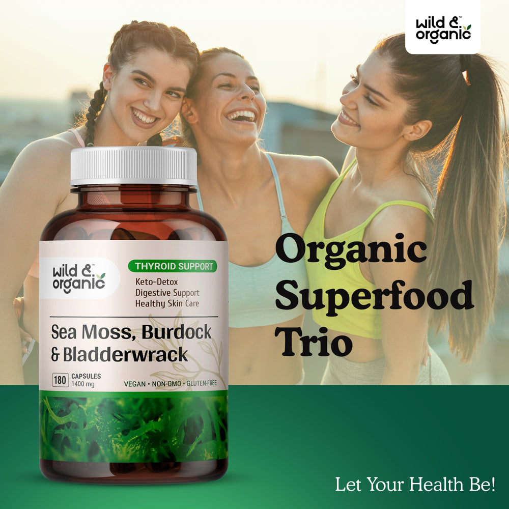 ORGANIC SUPERFOOD TRIO - These capsules combine 3 nutrient-rich raw ingredients: bladderwrack, burdock root, and Irish sea moss. These are raw, wildcrafted superfoods that are good for you.
