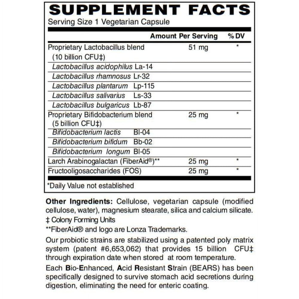 * The BEARS strains in this formula are designed to withstand the acid conditions present in the stomach during digestion without the need for enteric coating.