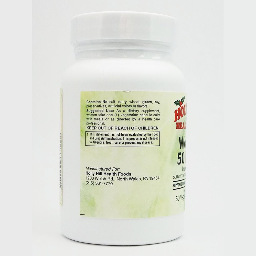 Suggested Use: As a dietary supplement, women take one(1) vegetarian capsule daily with meals or as directed by a health care professional. Store in a cool, dry place away from direct sunlight.