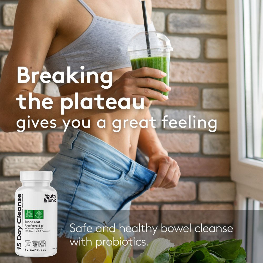 • Improves digestive health: Youth & Tonic 15 Day Cleanse with probiotics: Lactobacillus acidophilus and a mix of fibers: psyllium husk & flaxseeds supports natural detoxification, regular bowel movements, relieves constipation and bloating symptoms.