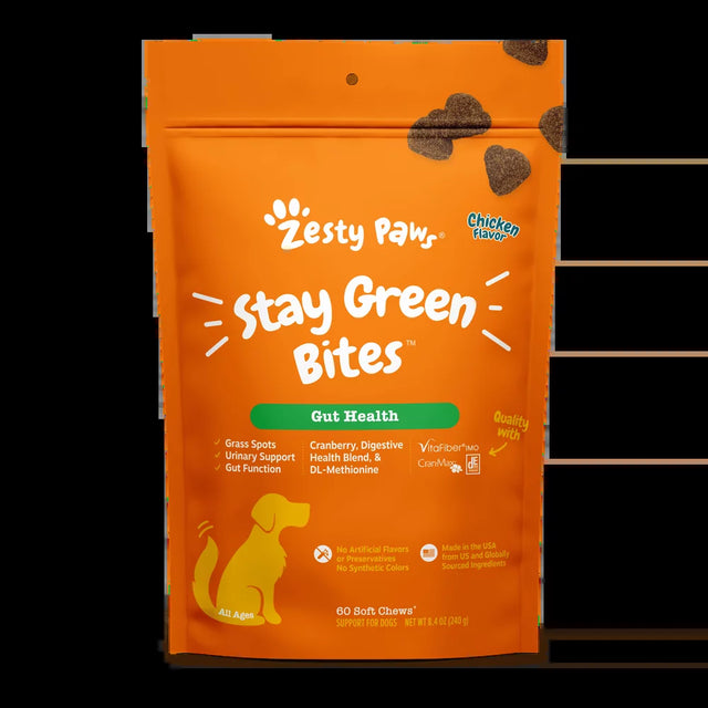 Zesty Paws Gut Health Stay Green Bites for Dogs, Urinary Care, Functional Digestive Health Dog Supplement, Chicken Flavor, 60 Count Soft Chews