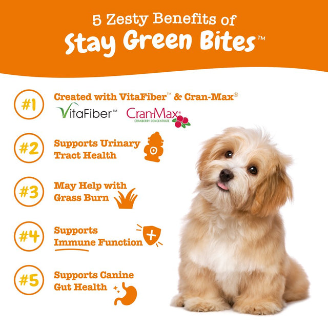 • Guard your lawn & help your pet: Zesty Paws Stay Green Bites are lawn protector chewables that get to the source of grass burn caused by dog urine to help your lawn go from burned to beautiful, while also providing digestive and bowel support.