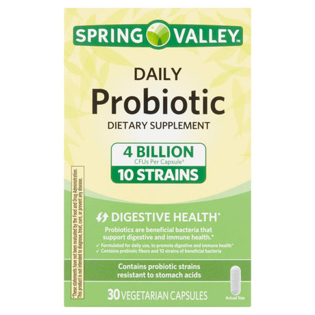 Spring Valley Daily Probiotic Dietary Supplement Vegetarian Capsules for Digestive Health, 30 Count