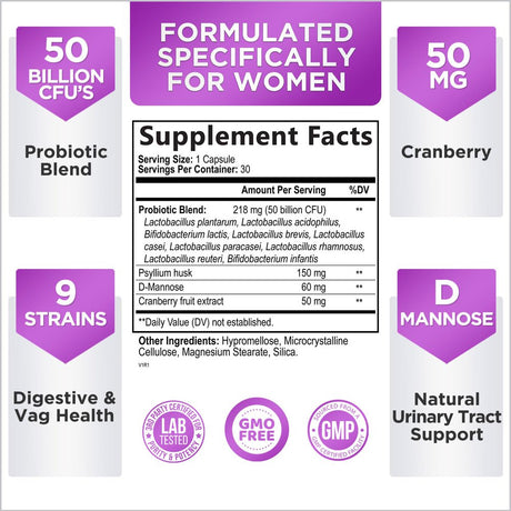 Probiotic for Women & Men'S Digestive Health | 3 Billion CFU | 90 Capsules | by Horbaach