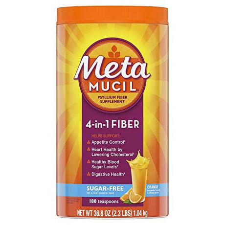 Metamucil Psyllium Husk Fiber Powder for Digestive Health, Sugar Free, Orange Flavor, 44 Packets