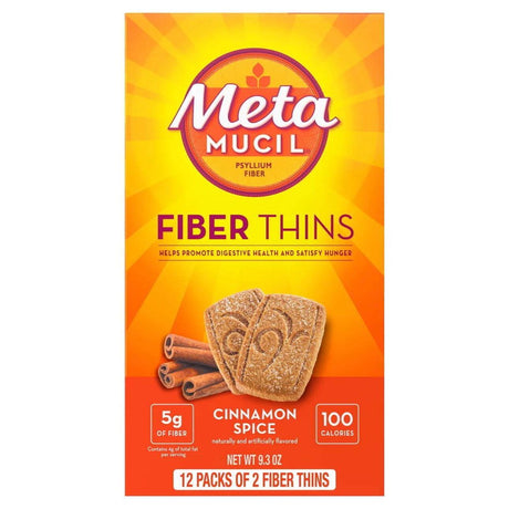 Metamucil Fiber Thins, Psyllium Husk Fiber Supplement for Digestive Health, Cinnamon Spice, 12 Ct