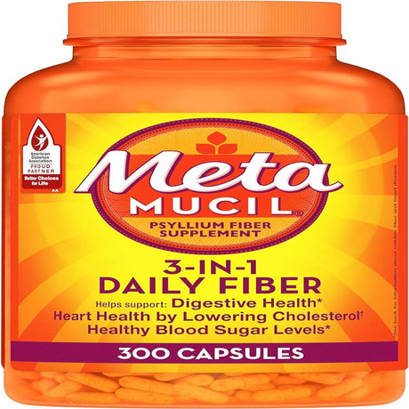 Metamucil Daily Fiber Supplement Capsules, Psyllium Husk Fiber for Digestive Health, 300 Ct