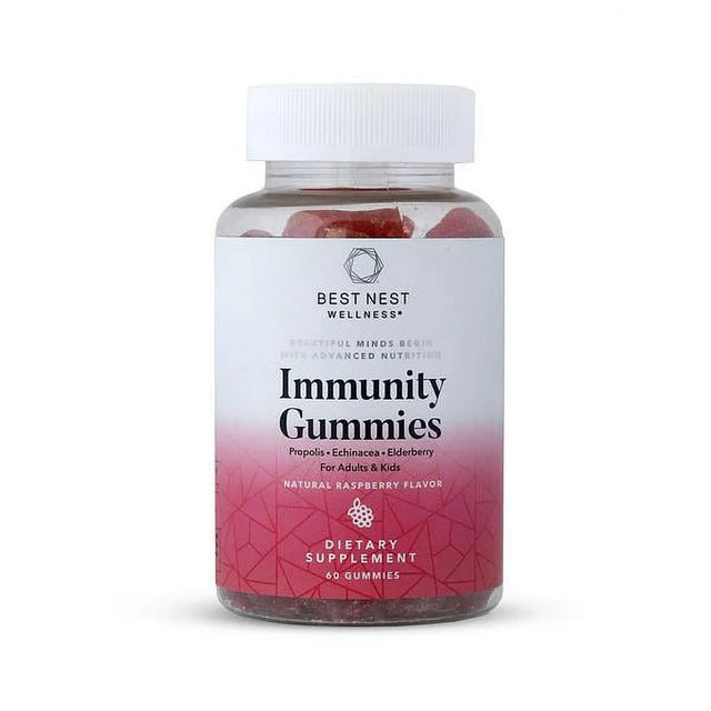 Best Nest Immunity Gummies with Propolis, Echinacea, Elderberry, Vitamin C, Daily Vitamins for Women, Men, Kids, Family, Boost Immune Support and Health, Raspberry Flavor, 60 ct