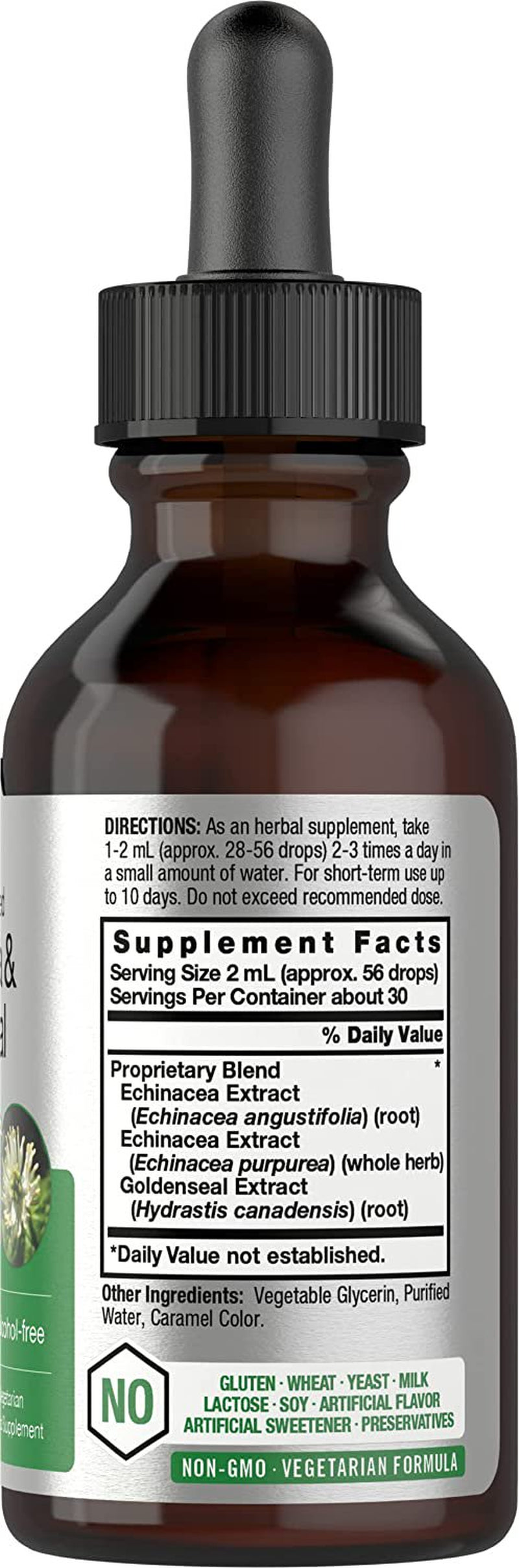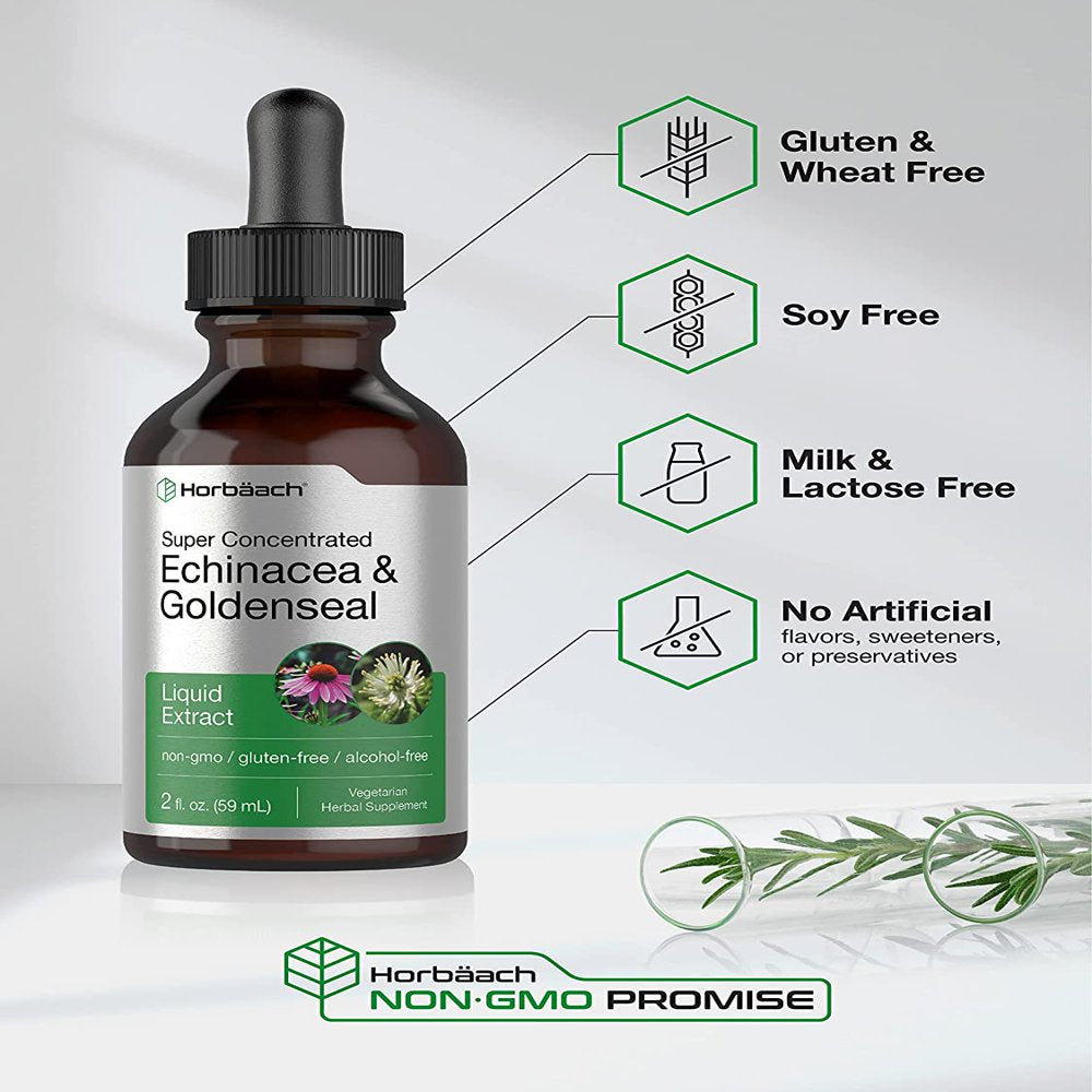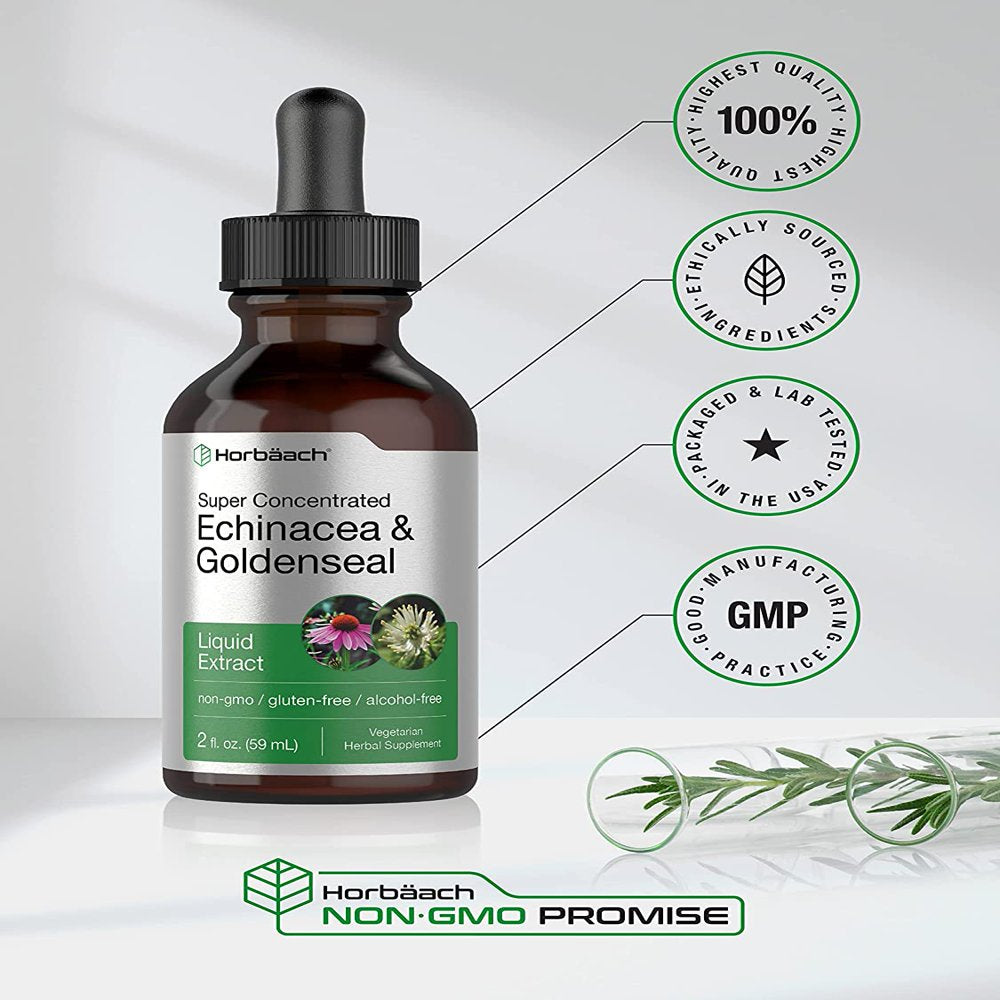 Echinacea Goldenseal Liquid Extract | 2 Fl Oz | Alcohol Free Tincture Drops | by Horbaach