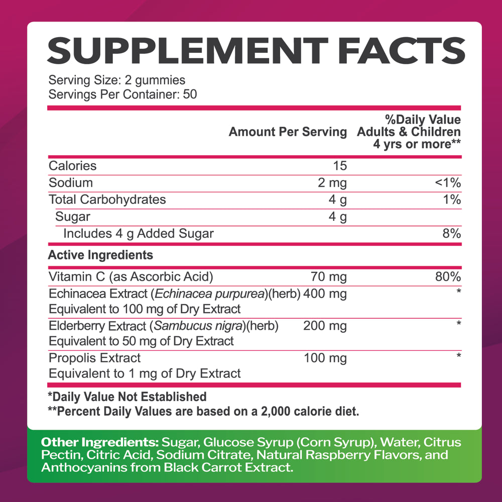 Elderberry Sambucus Gummies with Vitamin C, Echinacea, Propolis for Kids & Adults - 100 Gummies