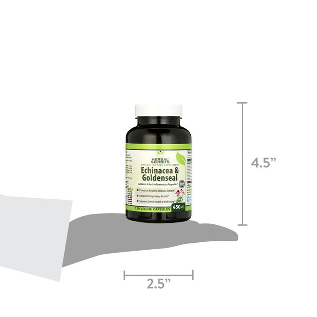 Herbal Secrets Echinacea & Goldenseal Root 450 Mg 120 Capsules (Non-Gmo) -Supports Immune and Respiratory Response* Supports Mucous Membranes, Immune Functions during Times of Seasonal*