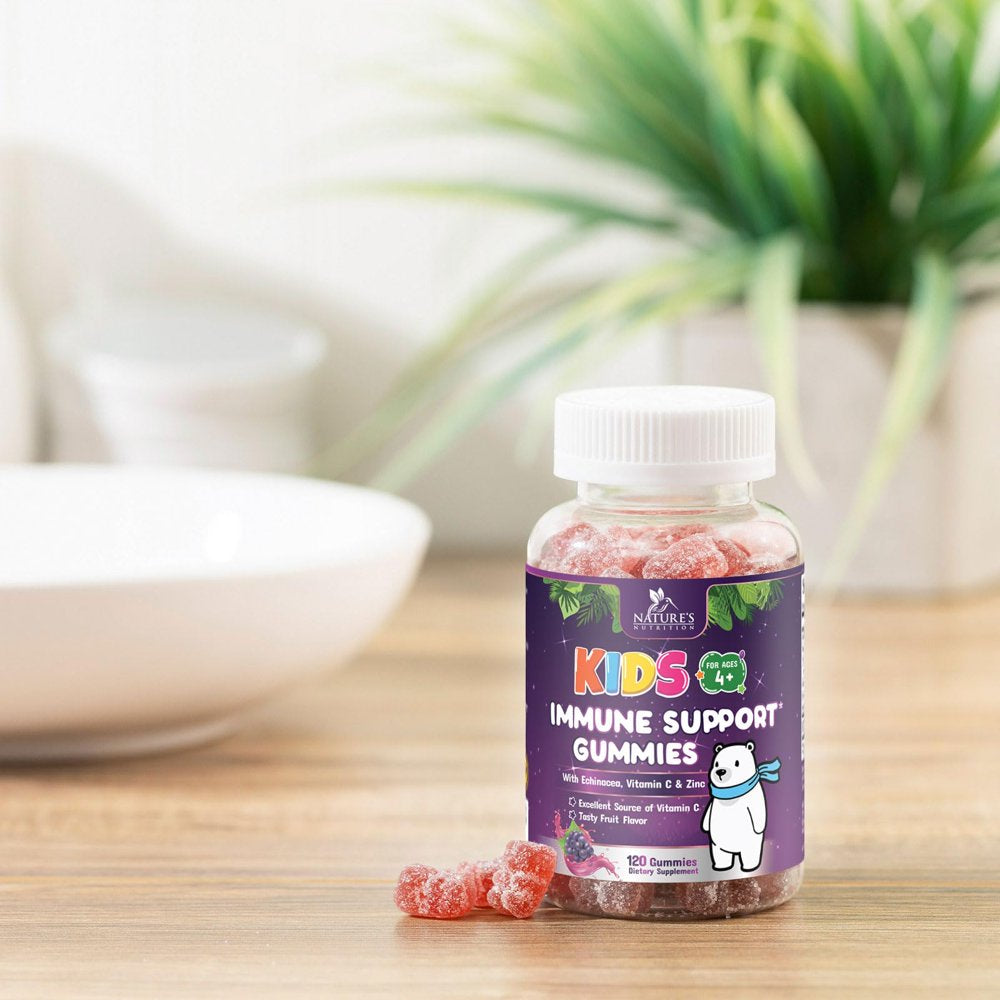 Kids Immune Support Gummies with Vitamin C, Zinc & Echinacea, Daily Childrens Immune Support Vitamin, Gluten Free & Non-Gmo Chewable Immune Support for Kids Gummy, Berry Flavored - 120 Gummies