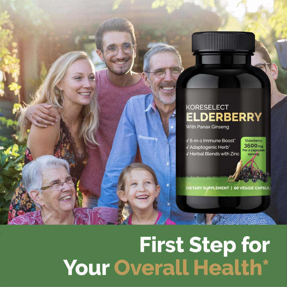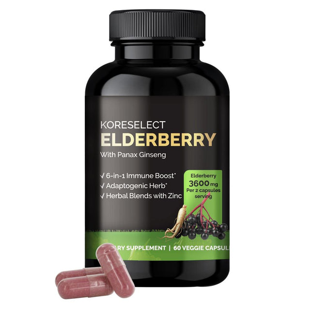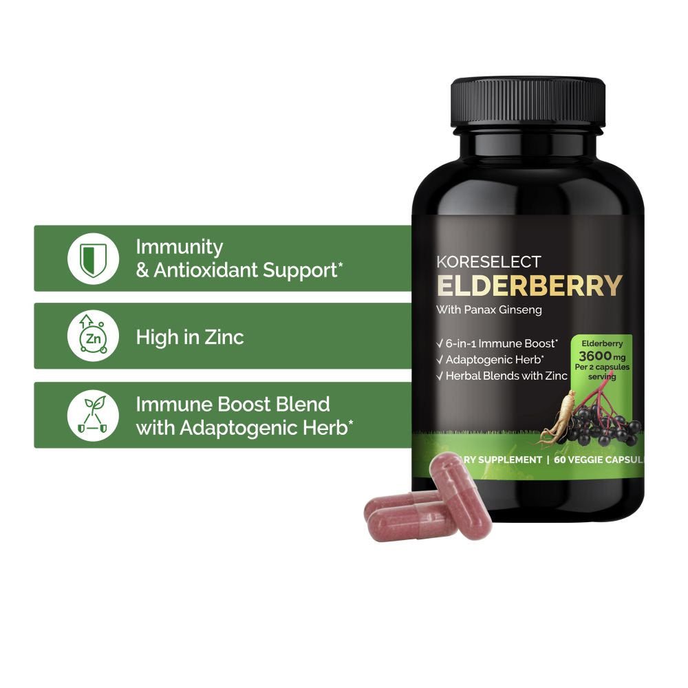 | Product Name | KORESELECT Elderberry Capsules with Panax Ginseng - Immune Support, 6-in1 Herbal Blend with Zinc, Ginger, Echinacea, Reishi Mushrooms - 60 Capsules |