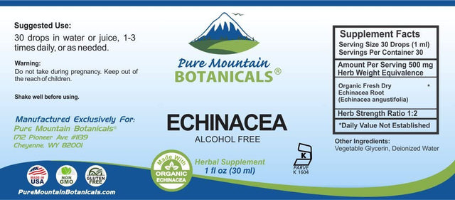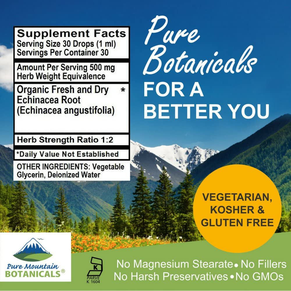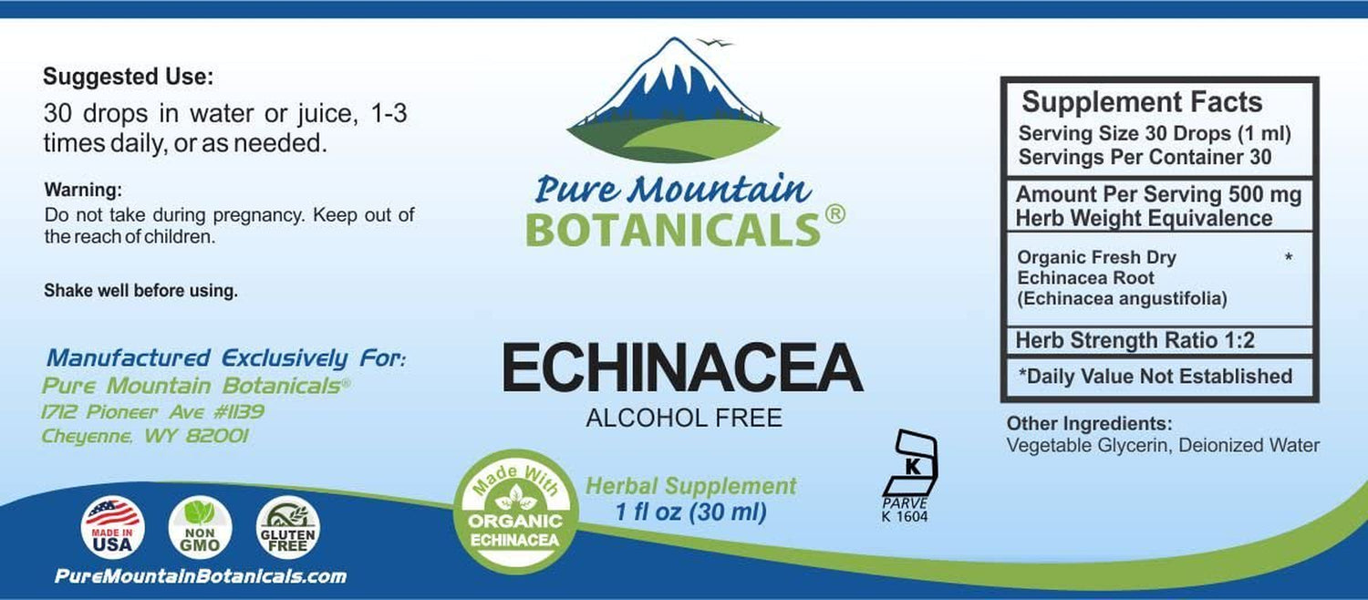 - LOVE IT GUARANTEE - Try the Best - Risk Free! These Organic Echinacea Drops and ALL Products from Pure Mountain Botanicals™ are covered by a no-question asked money back guarantee.