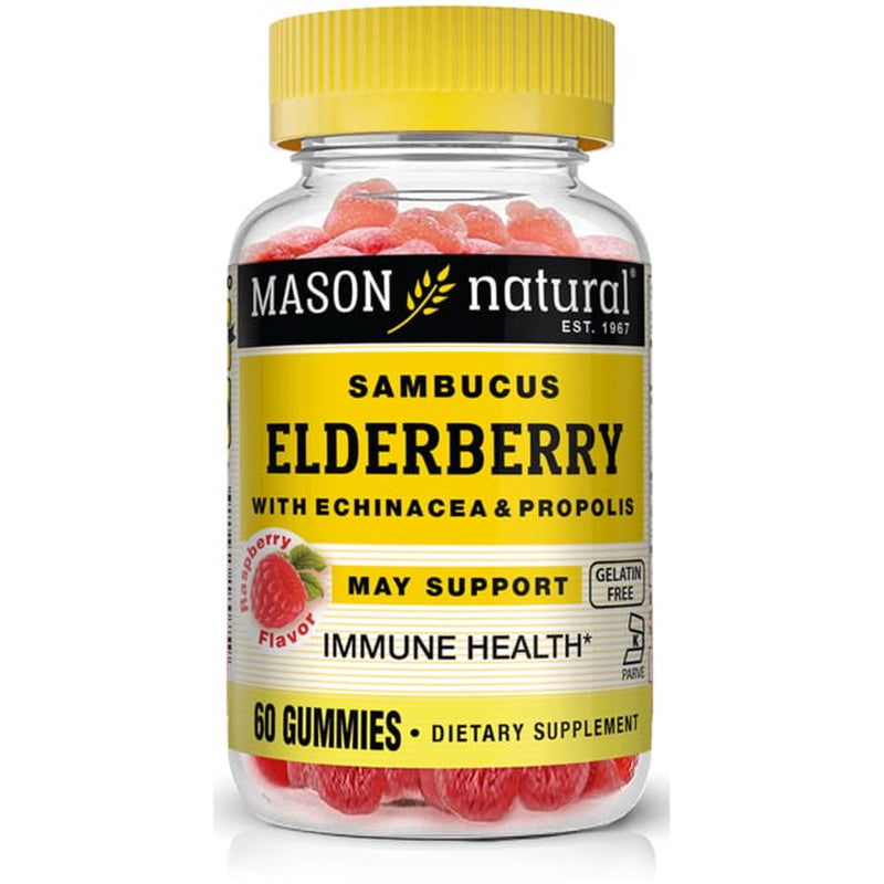 Mason Natural Sambucus Elderberry Gummies with Echinacea & Propolis - Antioxidant Immune System Support Supplement with Vitamin C, 60 Gummies