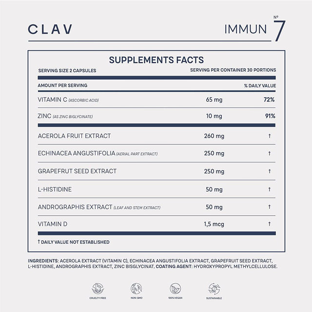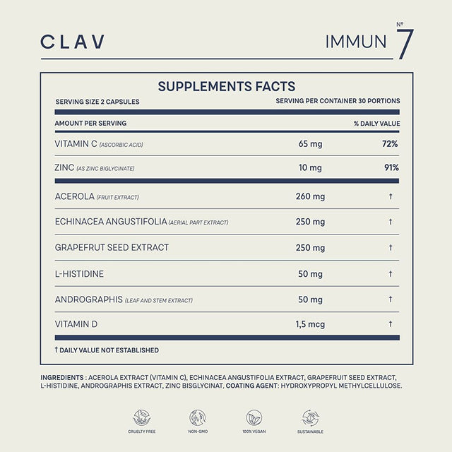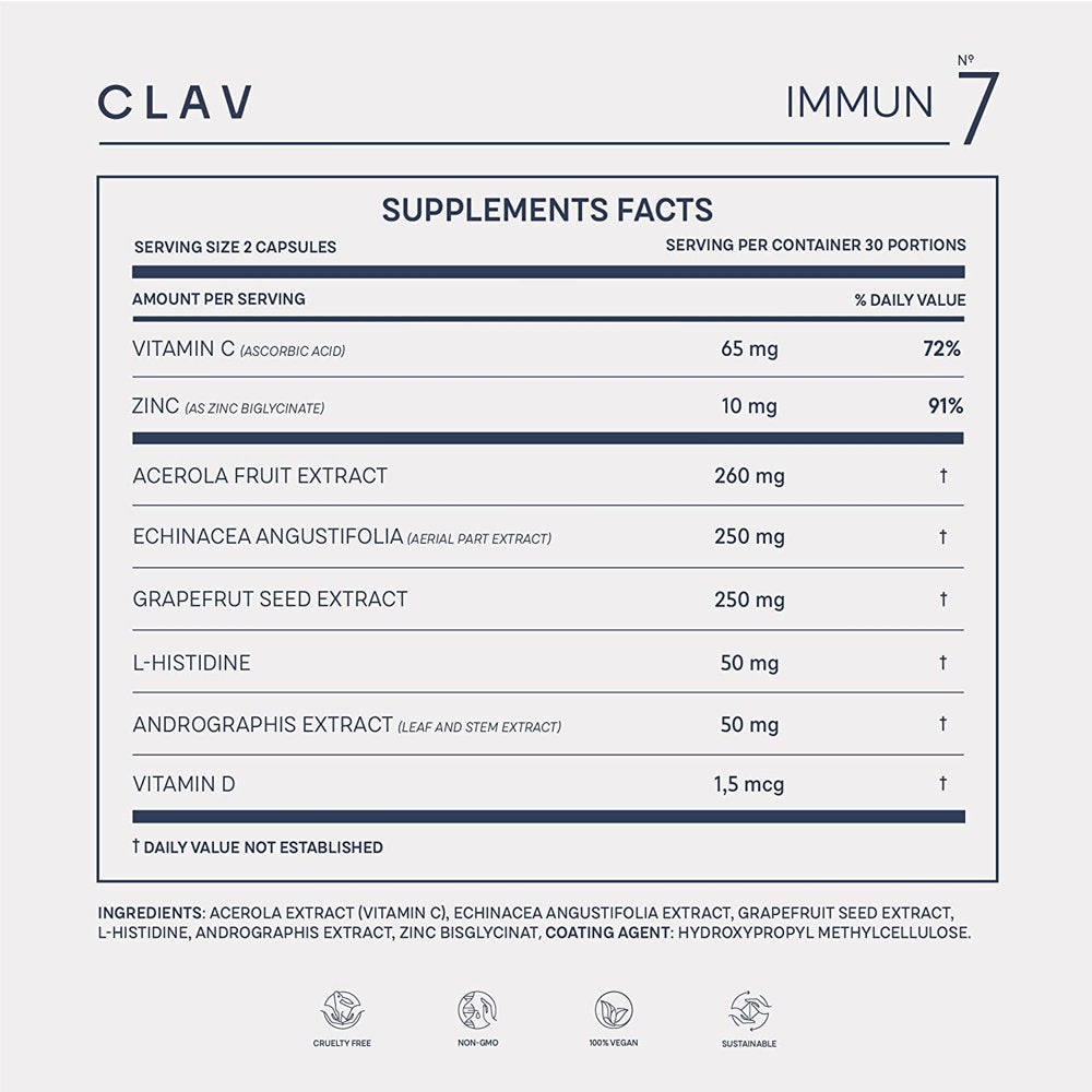 N°7 Immune Support Supplement - Immunity Boost with Echinacea - Natural Vitamin C from Acerola - Zinc - Andrographis - Grapefruit Seed Extract - Vegan Immune System Vitamins Complex - 60 Capsules