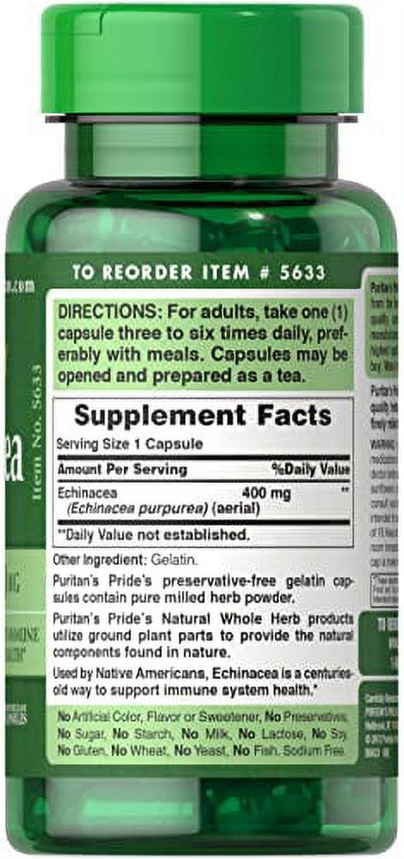 Product Name Puritans Pride Echinacea 400 mg, Twin Pack 400 Total Count