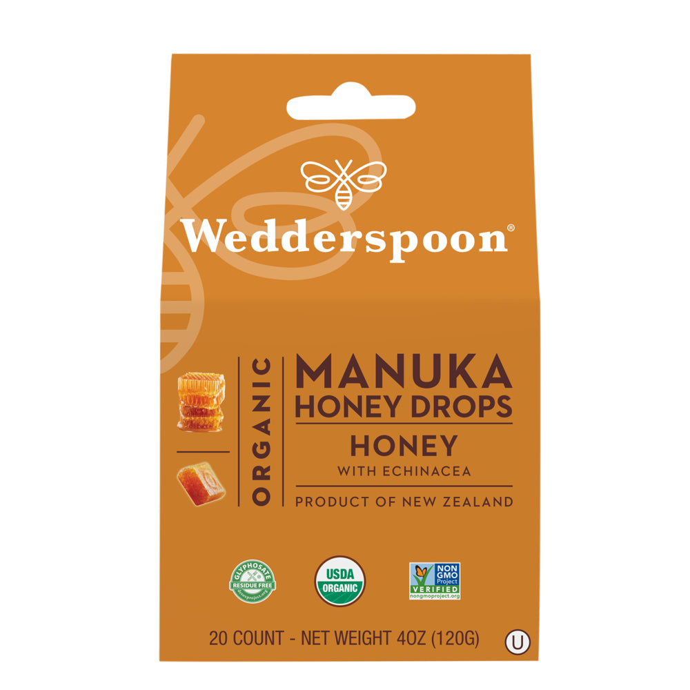 - Wedderspoon Organic Manuka Honey Drops, Honey with Echinacea, 4 oz (120 g), Cold Cough or Flu Treatment
