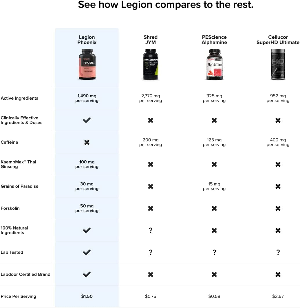 LEGION Phoenix Thermogenic Fat Burners & Weightloss Pills - 30 Serving, 90 Capsules (Caffeine)