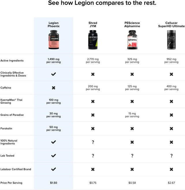 • CLEAN INGREDIENTS - Legion Athletics never compromises on quality, and all our products contain 100% transparent formulations with no “proprietary blends.” That means you know exactly what you’re buying, and every ingredient and dosage