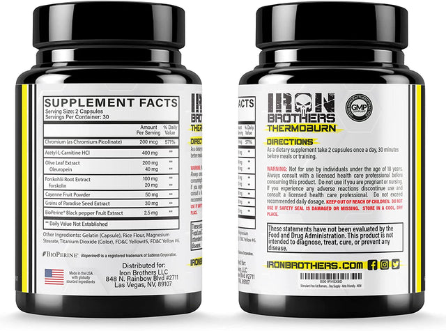 Your weight loss journey has never been easier with the amazing Stimulant-Free Fat Burner from Iron Brothers. Featuring a powerful mixture of ingredients like Acetyl L Carnitine, Olive Leaf Extract, and more. Imagine being able to increase your metabolism and make fat loss easier and faster without jitters or anxiety from stimulants.