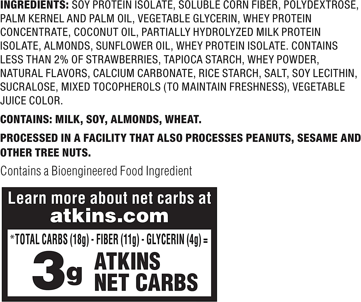 Atkins Strawberry Shortcake Protein Meal Bar, High Fiber, 1G Sugar, 3G Net Carb Meal Replacement, Keto Friendly, 30 Count