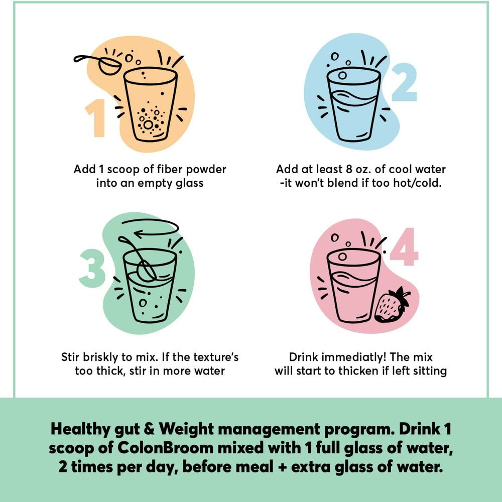 ColonBroom Psyllium Husk Powder Colon Cleanser is a Vegan, Gluten Free, and Non-GMO Fiber Supplement. It is a natural, Safe Colon Cleanse for Constipation Relief, Bloating Relief & Gut Health. A refreshing strawberry flavored Colon Broom drink that leaves you feeling lighter inside. Mix 1 scoop of psyllium powder with 12-14 fl oz of water - shake very well and drink immediately. If it’s left out the texture will get too thick. It’s just impacted fecal matter sitting in your belly. Psyllium husk powder for constipation is a bulk-forming soluble fiber that can soften your stools, and help lighten your load and may help your mood as well!