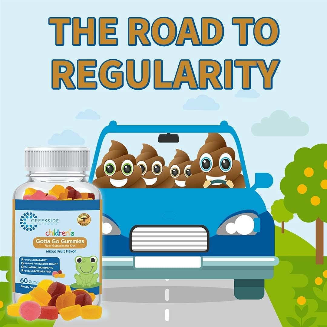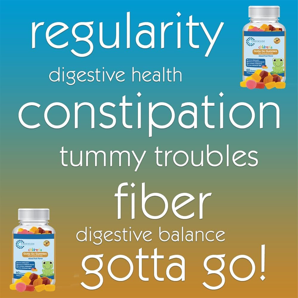 - FLAVORFUL FIBER FOR KIDS: Creekside Naturals Gotta Go Gummies are a great-tasting solution for fiber, constipation, and overall digestive health. Our original kid-friendly formula was created by a board certified pediatrician with carefully-sourced, natural ingredients.