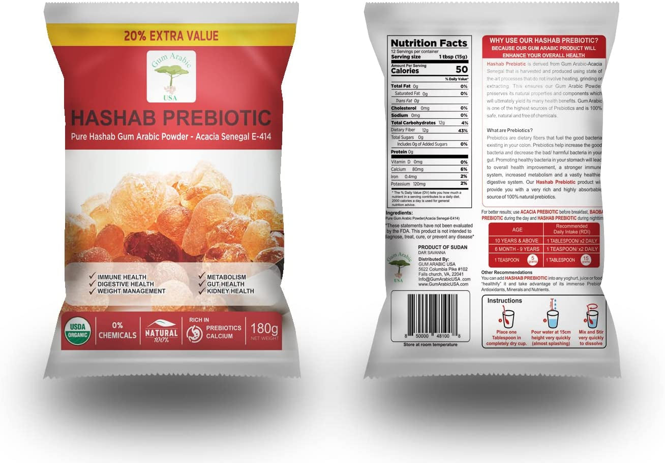This product is a Gum Arabic Superfood and has been scientifically tested, examined and produced from Acacia Senegal using patented technology. Our patented technology is used to produce pure 100% natural, organic and safe Gum Arabic without grinding, heating or extracting in order to preserve the natural properties and components of the product. This product contains more than 85% Prebiotic Fibers(poly and oligosaccharides) that are easily fermented by good bacteria. This product has many minerals and amino acids. It increases the total number and concentration of beneficial bacteria in your gut. It has both a "bifidogenic" and "lactobacillogenic" effect. This product is pure soluble dietary fiber. Increasing your dietary prebiotic fiber intake will help your weight managment, boost your metabolism, strengthen your immune system, support renal functions and greatly improves your digestive health.